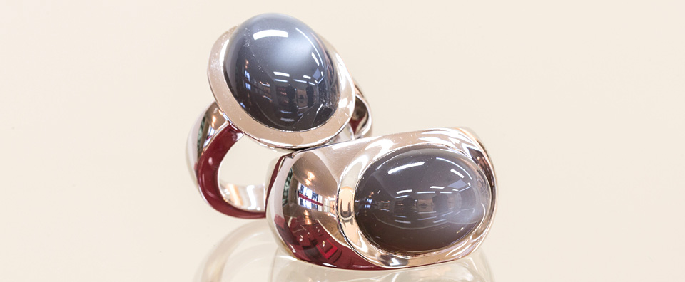 Unser Schmucksortiment bietet eine feine Auswahl erlesener Cabochons in opaleszierend schimmernden Farben.